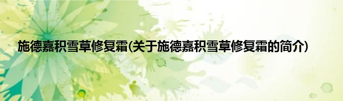施德嘉积雪草修复霜(关于施德嘉积雪草修复霜的简介)