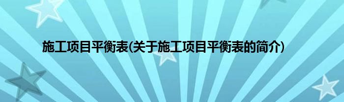 大家好,施工项目平衡表,关于施工项目平衡表的简介很多人还不知道,现在让我们一起来看看吧!