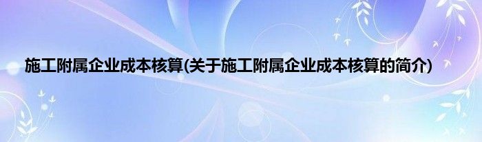 大家好,施工附属企业成本核算,关于施工附属企业成本核算的简介很多人还不知道,现在让我们一起来看看吧!