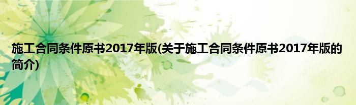 大家好,施工合同条件原书2017年版,关于施工合同条件原书2017年版的简介很多人还不知道,现在让我们一起来看看吧!