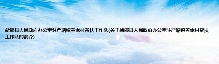 大家好,新邵县人民政府办公室驻严塘镇黄家村帮扶工作队,关于新邵县人民政府办公室驻严塘镇黄家村帮扶工作队的简介很多人还不知道,现在让我们一起来看看吧!