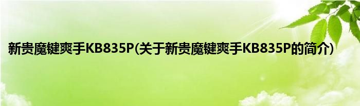 本文关于新贵魔键爽手KB835P的简介就讲解完毕,希望对大家有所帮助。