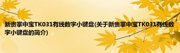 本文关于新贵掌中宝TK031有线数字小键盘的简介就讲解完毕,希望对大家有所帮助。