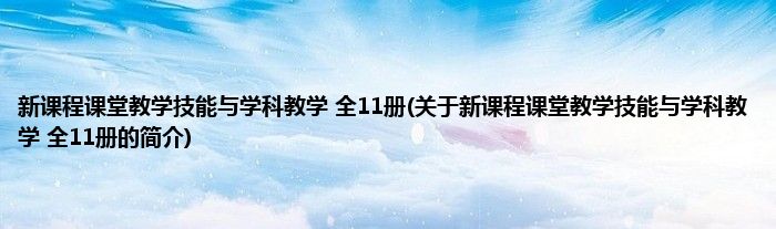 大家好,新课程课堂教学技能与学科教学 全11册,关于新课程课堂教学技能与学科教学 全11册的简介很多人还不知道,现在让我们一起来看看吧!