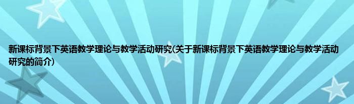 本文关于新课标背景下英语教学理论与教学活动研究的简介就讲解完毕,希望对大家有所帮助。