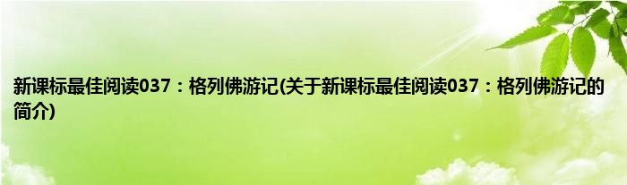 大家好,新课标最佳阅读037:格列佛游记,关于新课标最佳阅读037:格列佛游记的简介很多人还不知道,现在让我们一起来看看吧!