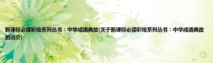 本文关于新课标必读彩绘系列丛书:中华成语典故的简介就讲解完毕,希望对大家有所帮助。
