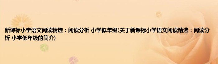 大家好,新课标小学语文阅读精选:阅读分析 小学低年级,关于新课标小学语文阅读精选:阅读分析 小学低年级的简介很多人还不知道,现在让我们一起来看看吧!