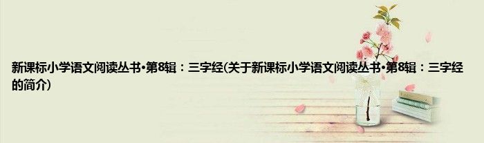 本文关于新课标小学语文阅读丛书·第8辑:三字经的简介就讲解完毕,希望对大家有所帮助。