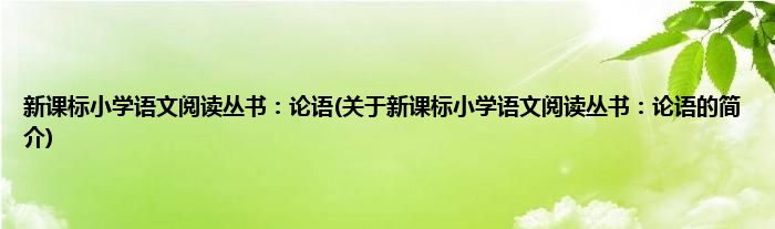 本文关于新课标小学语文阅读丛书:论语的简介就讲解完毕,希望对大家有所帮助。