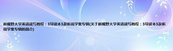 本文关于新视野大学英语读写教程:3导读本3及听说学案专辑的简介就讲解完毕,希望对大家有所帮助。