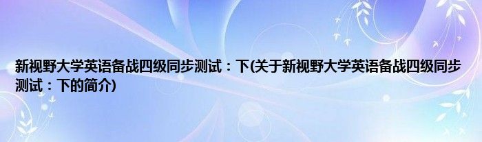 本文关于新视野大学英语备战四级同步测试:下的简介就讲解完毕,希望对大家有所帮助。