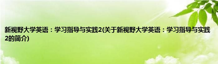 本文关于新视野大学英语:学习指导与实践2的简介就讲解完毕,希望对大家有所帮助。