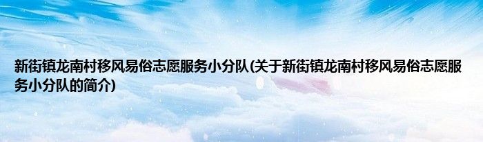 1、 新街镇龙南村移风易俗志愿服务小分队是由新街镇新时代文明实践志愿服务支队领导下的志愿团体。