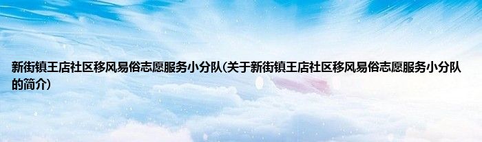 1、 新街镇王店社区移风易俗志愿服务小分队是由新街镇新时代文明实践志愿服务支队领导下的志愿团体。