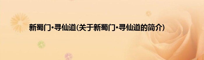 本文关于新蜀门·寻仙道的简介就讲解完毕,希望对大家有所帮助。