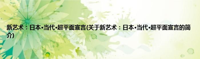 大家好,新艺术:日本·当代·超平面宣言,关于新艺术:日本·当代·超平面宣言的简介很多人还不知道,现在让我们一起来看看吧!