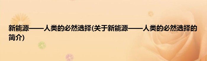 本文关于新能源——人类的必然选择的简介就讲解完毕,希望对大家有所帮助。