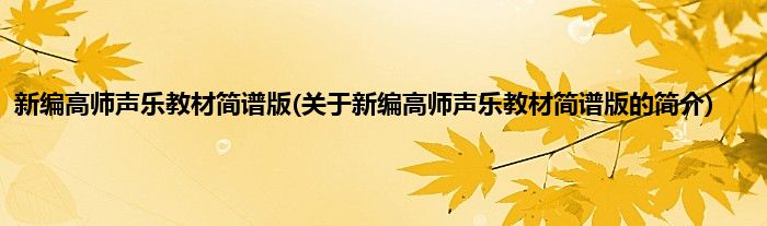 本文关于新编高师声乐教材简谱版的简介就讲解完毕,希望对大家有所帮助。