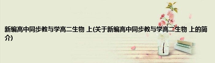 本文关于新编高中同步教与学高二生物 上的简介就讲解完毕,希望对大家有所帮助。