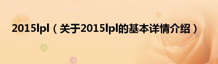 本文关于2015lpl的基本详情介绍就讲解完毕,希望对大家有所帮助。