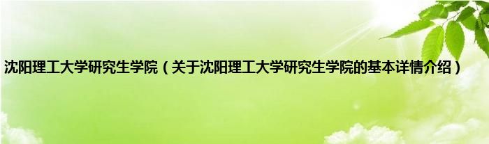 本文关于沈阳理工大学研究生学院的基本详情介绍就讲解完毕,希望对大家有所帮助。