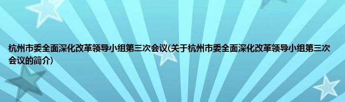 1、 杭州市委全面深化改革领导小组第三次会议是杭州市召开的会议。