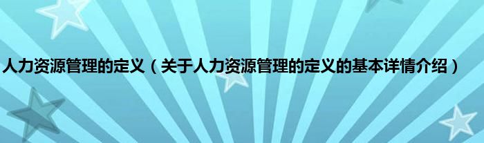 本文关于人力资源管理的定义的基本详情介绍就讲解完毕,希望对大家有所帮助。