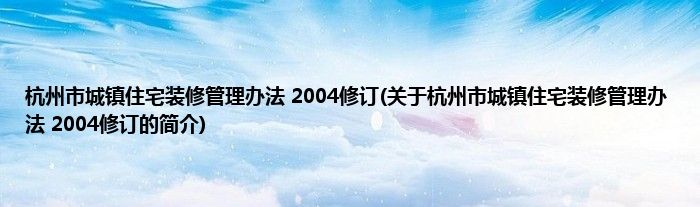 本文关于杭州市城镇住宅装修管理办法 2004修订的简介就讲解完毕,希望对大家有所帮助。