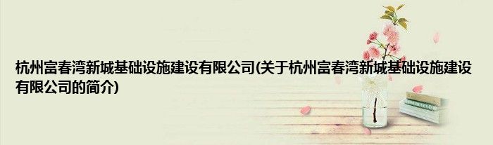 杭州富春湾新城基础设施建设有限公司(关于杭州富春湾新城基础设施建设有限公司的简介...