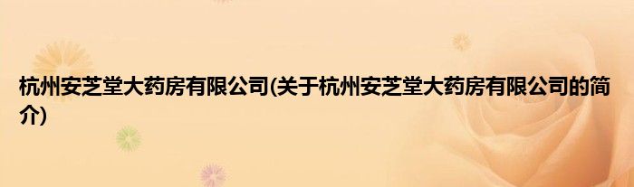 本文关于杭州安芝堂大药房有限公司的简介就讲解完毕,希望对大家有所帮助。