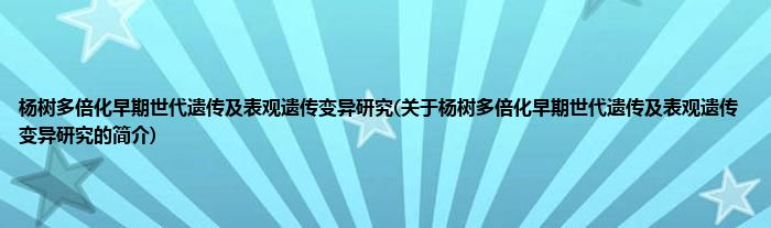 本文关于杨树多倍化早期世代遗传及表观遗传变异研究的简介就讲解完毕,希望对大家有所帮助。