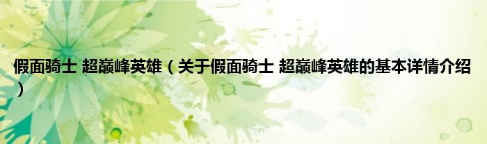 本文关于假面骑士 超巅峰英雄的基本详情介绍就讲解完毕,希望对大家有所帮助。