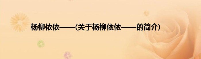 本文关于杨柳依依——的简介就讲解完毕,希望对大家有所帮助。