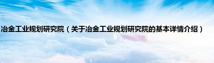 本文关于冶金工业规划研究院的基本详情介绍就讲解完毕,希望对大家有所帮助。