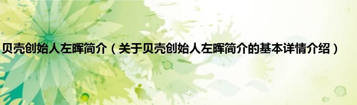 本文关于贝壳创始人左晖简介的基本详情介绍就讲解完毕,希望对大家有所帮助。
