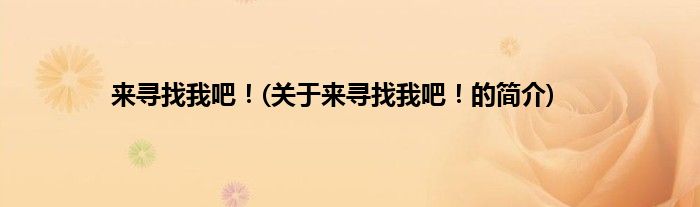 本文关于来寻找我吧!的简介就讲解完毕,希望对大家有所帮助。