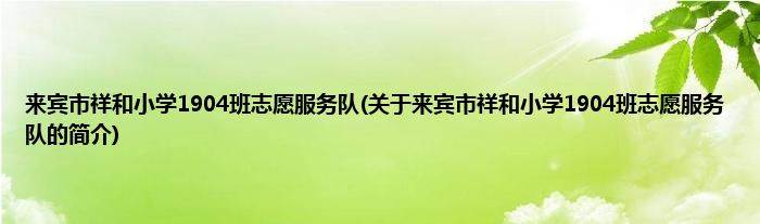 本文关于来宾市祥和小学1904班志愿服务队的简介就讲解完毕,希望对大家有所帮助。