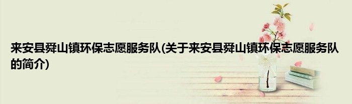 本文关于来安县舜山镇环保志愿服务队的简介就讲解完毕,希望对大家有所帮助。