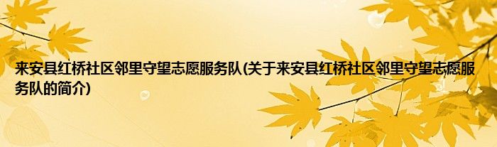 本文关于来安县红桥社区邻里守望志愿服务队的简介就讲解完毕,希望对大家有所帮助。