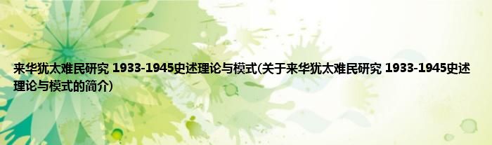 大家好,来华犹太难民研究 1933-1945史述理论与模式,关于来华犹太难民研究 1933-1945史述理论与模式的简介很多人还不知道,现在让我们一起来看看吧!