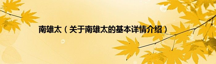 本文关于南雄太的基本详情介绍就讲解完毕,希望对大家有所帮助。