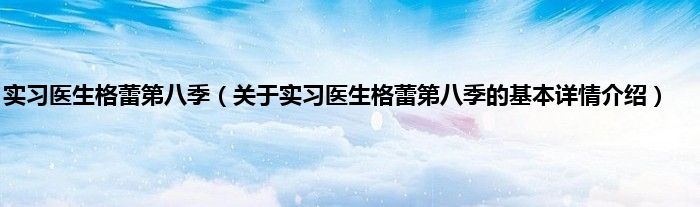 本文关于实习医生格蕾第八季的基本详情介绍就讲解完毕,希望对大家有所帮助。