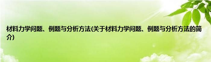 材料力学问题、例题与分析方法(关于材料力学问题、例题与分析方法的简介)