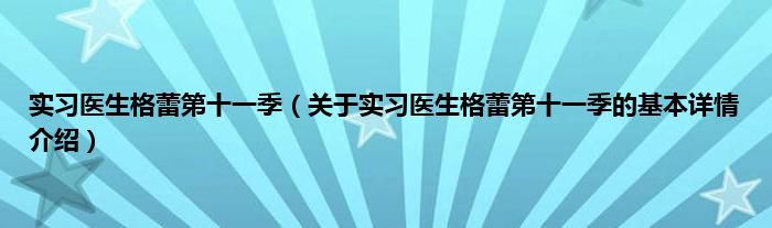 本文关于实习医生格蕾第十一季的基本详情介绍就讲解完毕,希望对大家有所帮助。