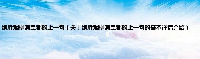 本文关于绝胜烟柳满皇都的上一句的基本详情介绍就讲解完毕,希望对大家有所帮助。