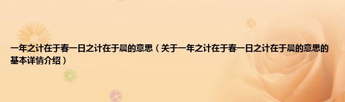 本文关于一年之计在于春一日之计在于晨的意思的基本详情介绍就讲解完毕,希望对大家有所帮助。