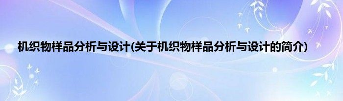 本文关于机织物样品分析与设计的简介就讲解完毕,希望对大家有所帮助。