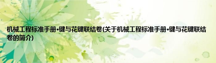 大家好,机械工程标准手册·键与花键联结卷,关于机械工程标准手册·键与花键联结卷的简介很多人还不知道,现在让我们一起来看看吧!