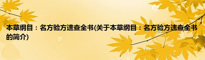 本文关于本草纲目:名方验方速查全书的简介就讲解完毕,希望对大家有所帮助。